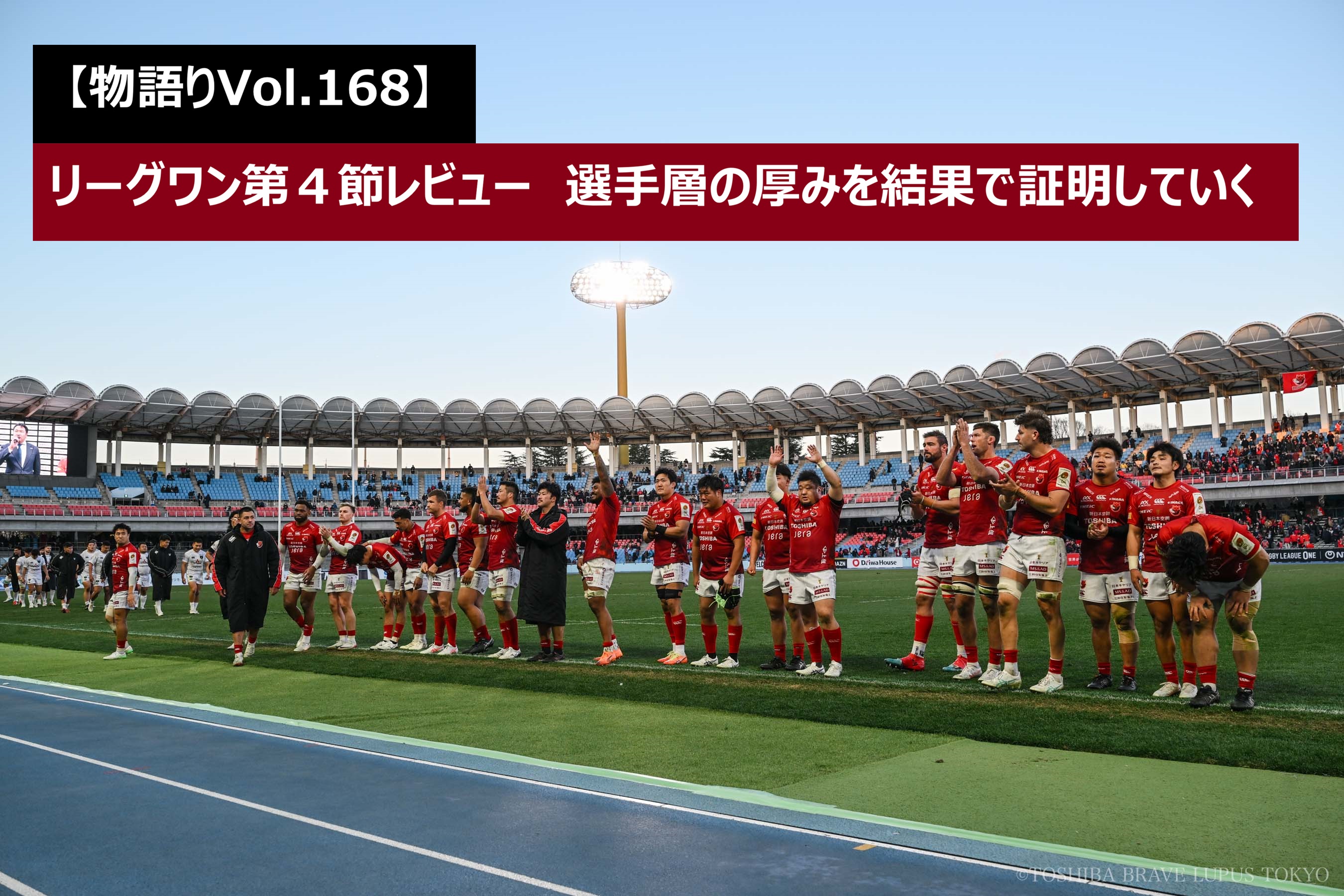 NTTジャパンラグビーリーグワン2025-26 第4節、相模原DB戦が26年1月10日にUvanceとどろきスタジアムby Fujitsu(以下、とどろきスタジアム)を舞台に行なわれました。前節終了時点で、東芝ブレイブルーパス東京は2勝1敗の勝点9で5位です。