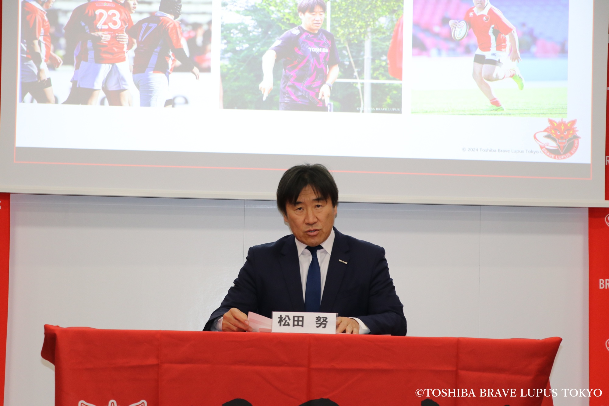 2月26日、東芝ブレイブルーパス東京は定例記者会見を実施しました。最初に事業運営部の松田努氏が登壇し、アカデミーの新規事業についての説明がありました。