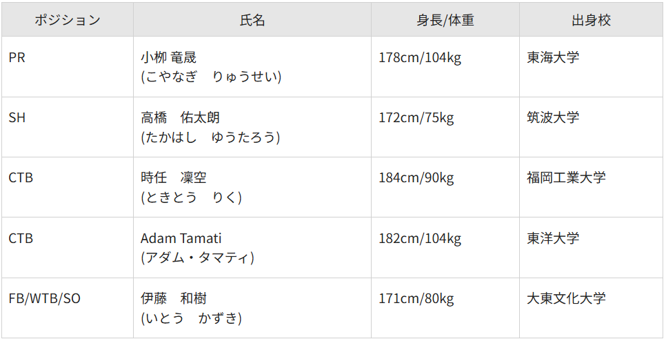 ■リーグワン公式情報東芝ブレイブルーパス東京、新加入選手のお知らせ